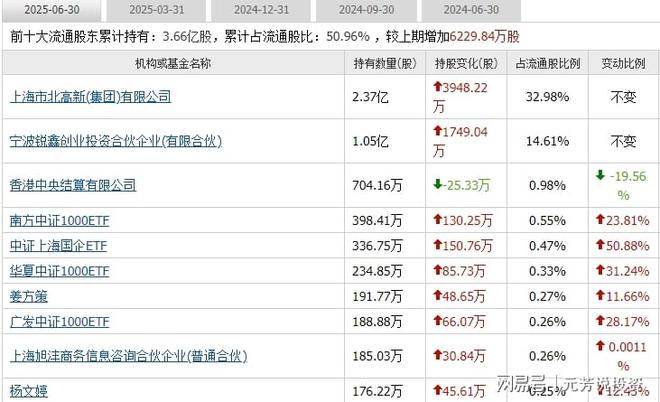 前十大流通股东,全部加仓,合计加仓5148万股。其中,北上资金重仓3763万股,加仓233万股,连续4个季度加仓;3大超级牛散和公司董监高合计重仓1.35亿股,加仓2947万股。