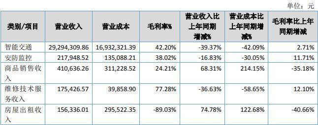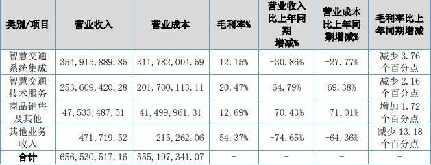 但数字城市与交通业务板块中占比较大的高速公路机电集成业务受客户需求下降、行业竞争加剧等因素影响导致板块收入和毛利同比下降较为明显,实现营业收3.68亿元,同比减少23.62%。