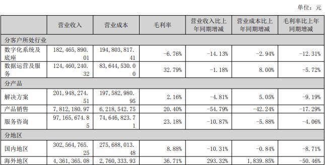 报告期内,公司实现营业收入49.19亿元,同比增长65.22%;实现归属于上市公司股东的净利润1.35亿元,同比扭亏为盈,报告称主要是公司保持稳定的业务拓展与在手订单的交付,同时公司战略投资的人工智能企业股权价值上升,公允价值变动收益增加所致;实现归属于上市公司股东的扣除非经常性损益的净利润0.15亿元,同比增长323.98%,主要是公司持续稳定拓展业务,且在手订单保持高质量交付。