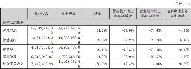 本报告期,公司实现营业收入7.89亿元,同比减少9.97%;归属于上市公司股东的净利润983万元,同比减少91.21%。报告称系主要受数字城市与交通业务板块机电集成业务营收及毛利下降等因素影响,同时数字化软件业务存在季节性特点。