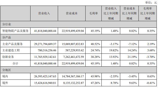 公司实现营业总收入33.10亿元,同比下降7.21%。公司智慧交通业务(剔除子公司视频产品贡献)实现营业总收入7.41亿元,同比下降37.62%。