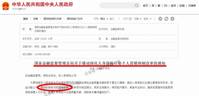 国家金融监督管理总局关于推动深化人身保险行业个人营销体制改革的通知金规〔2025〕13号